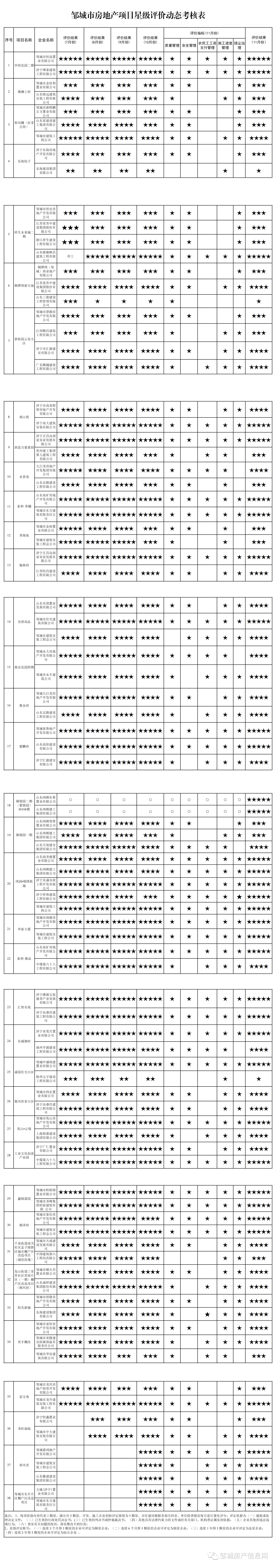 為進一步強化房地產(chǎn)開發(fā)項目監(jiān)管,全面提升項目現(xiàn)場管理水平,鄒城市住房和城鄉(xiāng)建設(shè)局堅持“科學公正、星級評價、動態(tài)監(jiān)管、聯(lián)動提升”的原則,制定了《鄒城市房地產(chǎn)開發(fā)、施工企業(yè)星級評價管理辦法(試行)》,對房地產(chǎn)開發(fā)項目的質(zhì)量管理、安全管理、農(nóng)民工工資支付管理、施工進度、揚塵治理等五個方面按星級評價進行監(jiān)督管理,現(xiàn)將11月份鄒城市房地產(chǎn)項目星級評價月度動態(tài)考核結(jié)果通報如下: